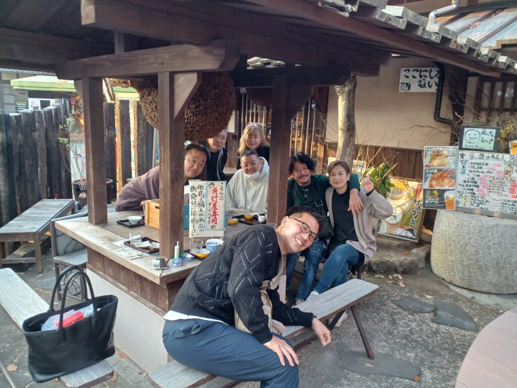 年末恒例の慰安旅行で湯布院に行ってきました。12月8日午前11時に集合し目的地湯布院まで車6台で出発です。私は行き帰りのドライバーを志願し湯布院に到着するまで運転に集中のため緊張状態でした。湯布院に到着すると緊張してた運転から解放され金鱗湖の角打屋さんではしゃぎまくり状態です。