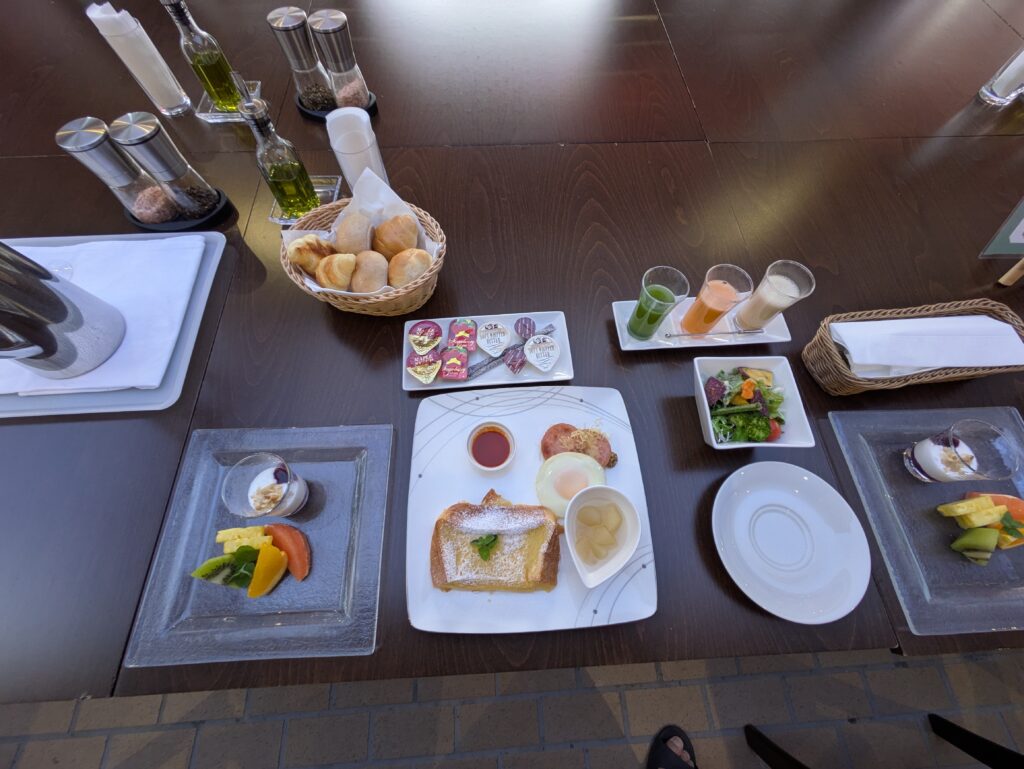お部屋は約100㎡の特別室で内風呂も付いていて2名で宿泊です。とても広々したお部屋でもの凄く寛げることが出来ました。朝食は夕食同様で洋食でした。年配の私は朝からのフレンチトーストはちょっとヘビーな朝食となりました。