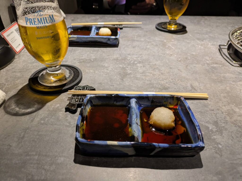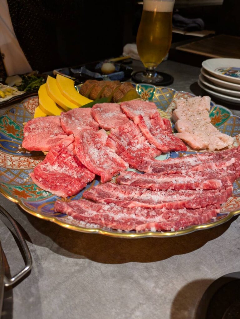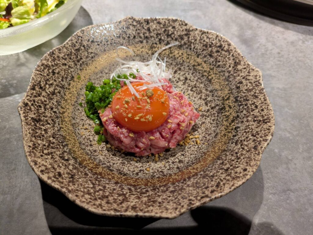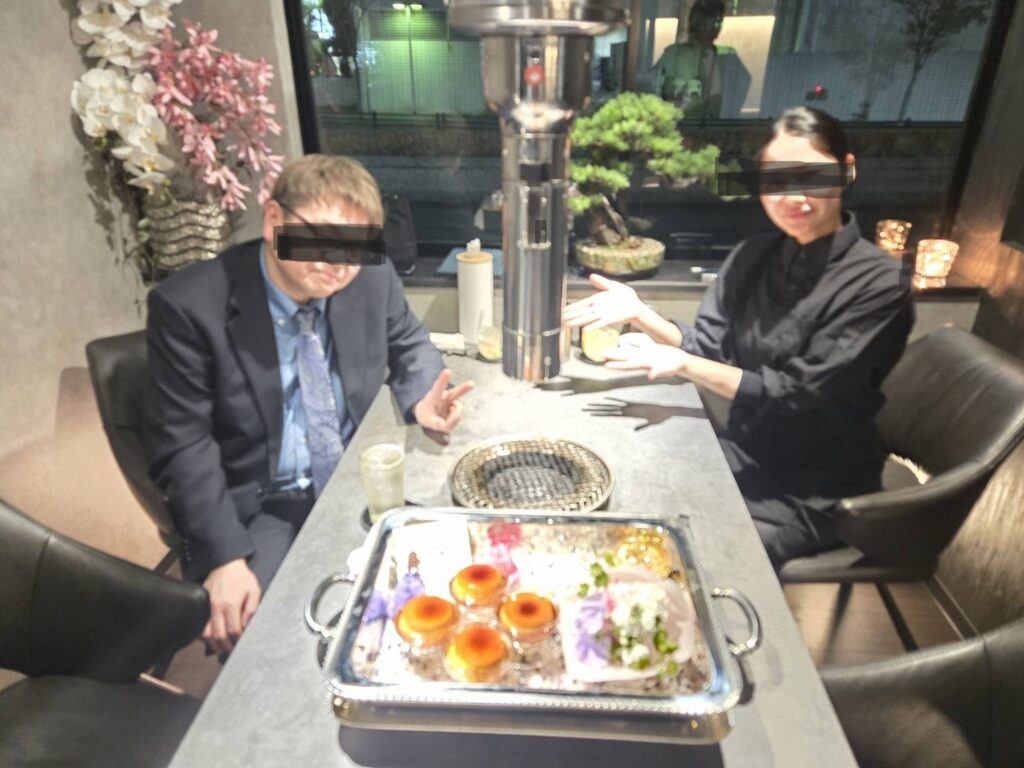 本日のディナーはプレミアムコースです。先ずはサラダから、このドレッシングは、私の口にとても合って美味しかったです。続いてはユッケ、この生卵にビックリ!!! すごく濃厚な卵でした。もちろんこのユッケに合ってます。お肉とトリュフごはんは、同時に持ってきてもらうように選択、お肉は塩味からスタート、タン・ミノ・片ロースからです。タンは今まで食べた中で一番美味しかった!他の2品も、もちろん美味しかったです。トリュフごはんはトリュフの香りがとても良く、先程ご紹介した濃厚たまごをかけていただきます。これが美味いのなんのって、サイコーでした♪♪ナムルのザーサイとレンコン初めて食しました。キムチのゴボウも初めてでした。どちらも美味しかったです。次のメニューは、たれで味わうお肉です。シャトーブリアンとハラミはとても柔らかく、薬味も私好みに…とても美味しくいただきました。わかめスープは、あさりも入っていて味がとても良かったです。最後は主催者様よりサプライズです。本来なら個別にデザートがでてきて終了ですが、お店からお誕生日のメッセージカードとお花を添えて祝っていただきました。そしてお店のスタッフの方と記念撮影です。Uさんもこのサプライズにとても感激していました!素敵な誕生日会となりました。本日参加させていただきありがとうございました。とても素敵なお誕生日会でした。