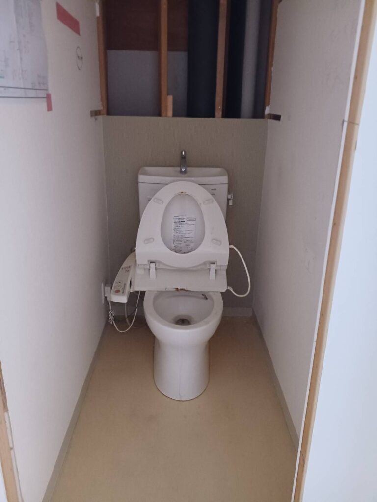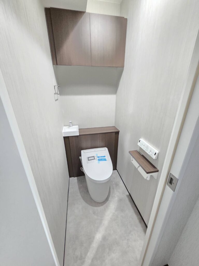 トイレはLIXILのJフィットを新設し、手洗器がつき両サイドは収納もでき、上段にはキャビネットも新調し、収納豊富のトイレに変身しました。
