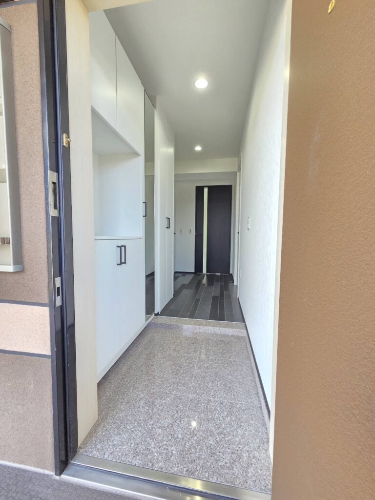 玄関は玄関収納と横にあった収納の扉を新調し、建具は全て新調しました。お客様のご希望で色はホワイト仕様にしてリビングドアだけブラックにしましたが、シックでとても素敵に仕上がりました。