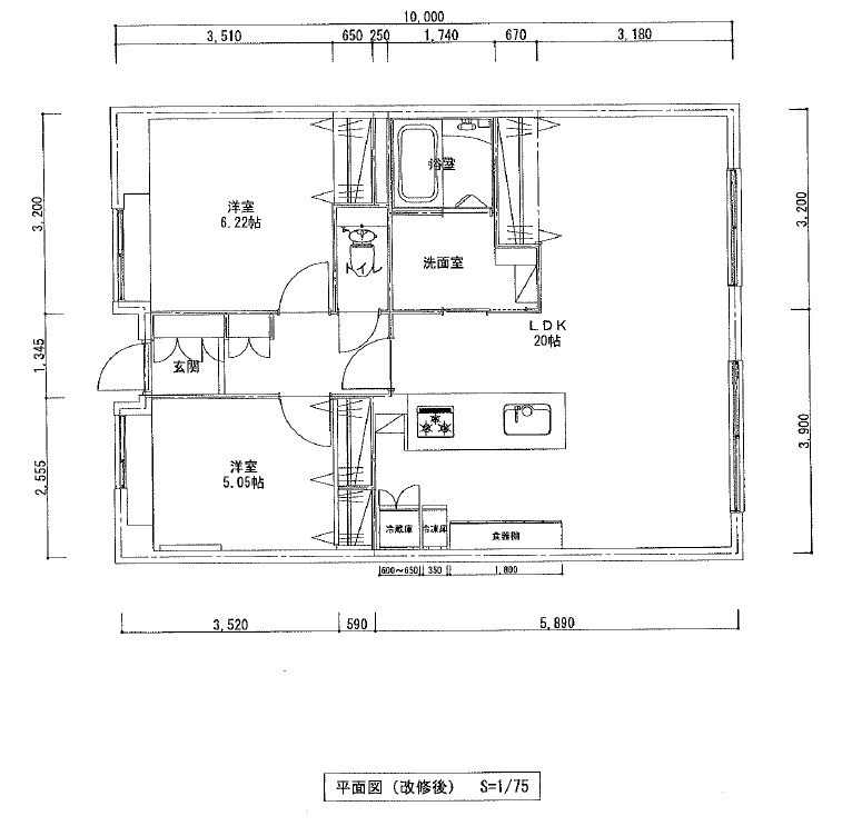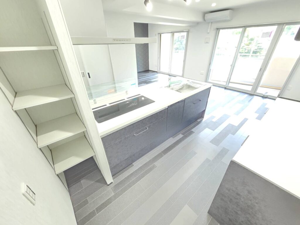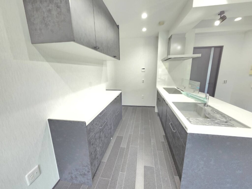 キッチンは元々あった位置を変更(間取図参照)し、ペニンシュラ型を新調し、カップボードを新設しました。IHクッキングヒーターはお客様のご要望でPanasonicのトリプルワイド仕様にしました。とても使いやすそうですね。