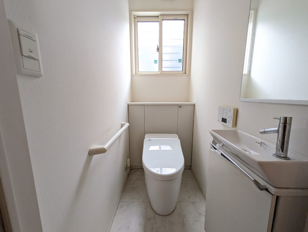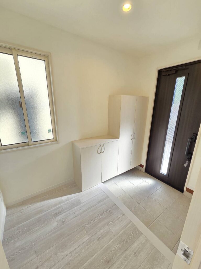 水回り4点交換、全室の壁・天井クロス張替え、1階床のフロアタイル上貼り、畳の表替え、バルコニー防水シート張替え、給湯器交換等を行いました。