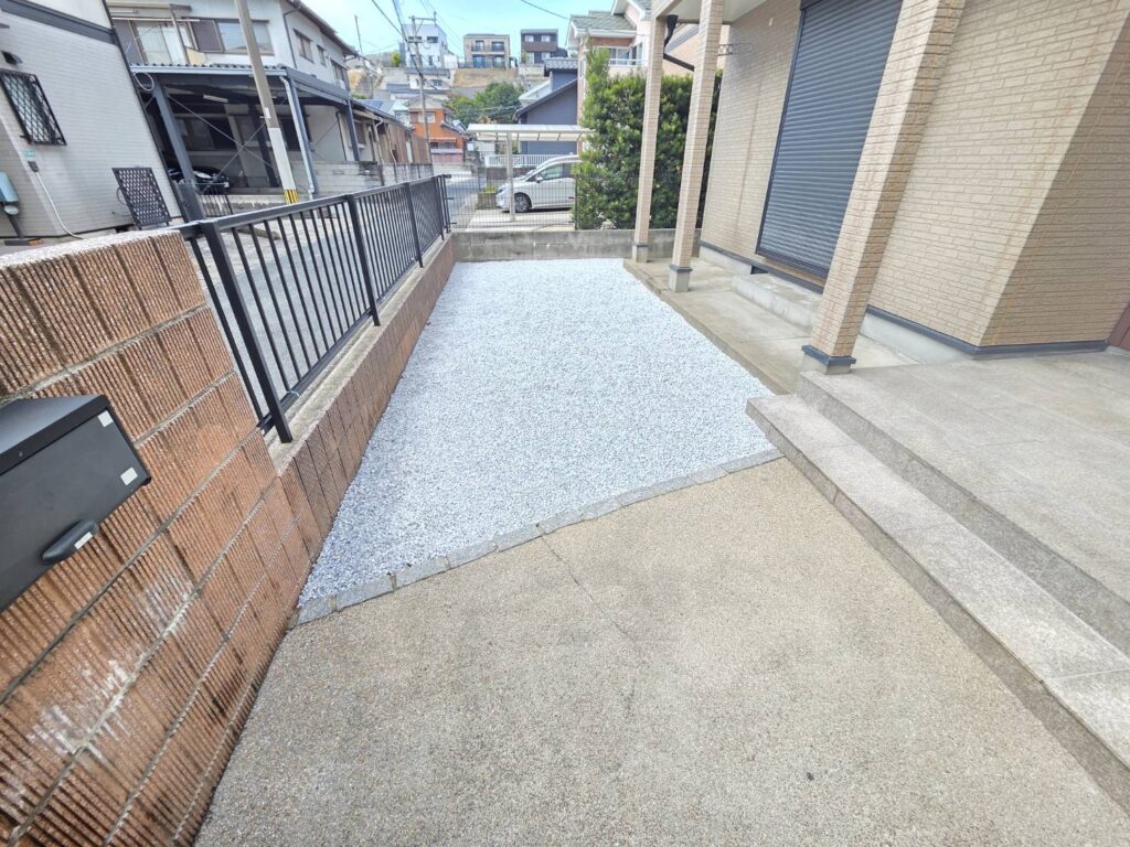 駐車場3台分駐車可能な駐車スペースと、敷地内は全て防草シート・白バラスで仕上げた綺麗なお庭になりました♪