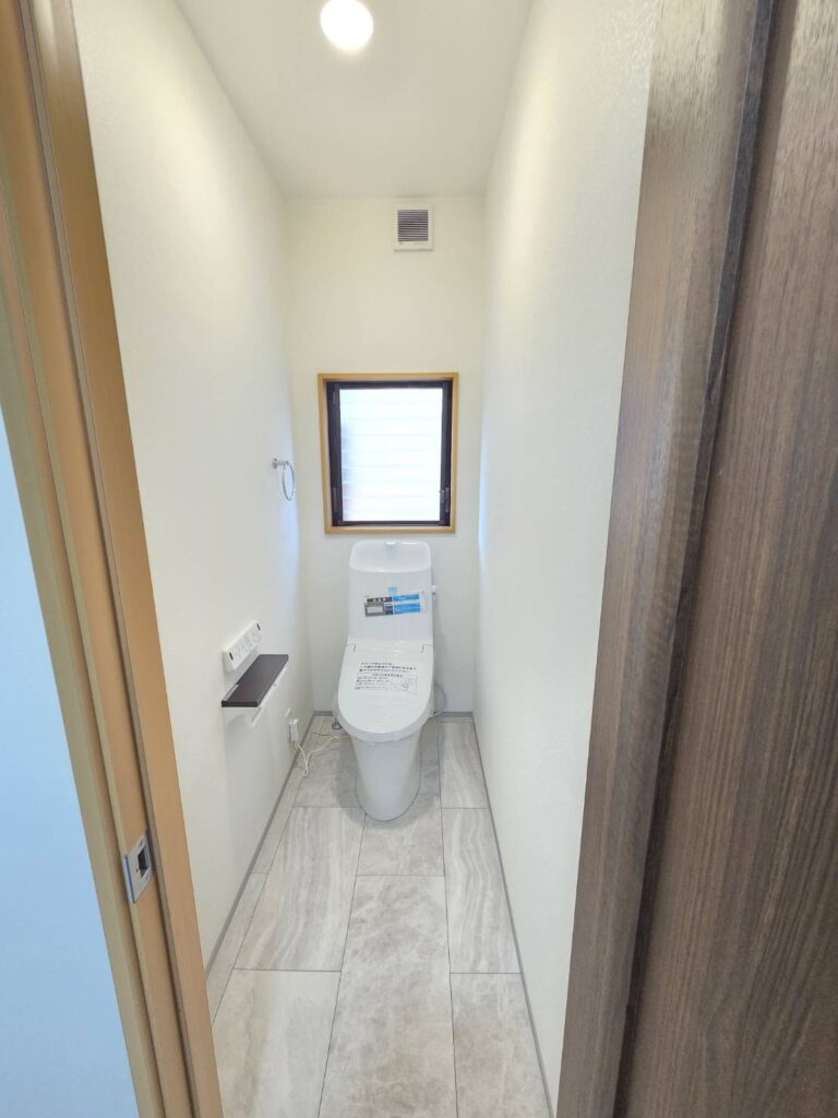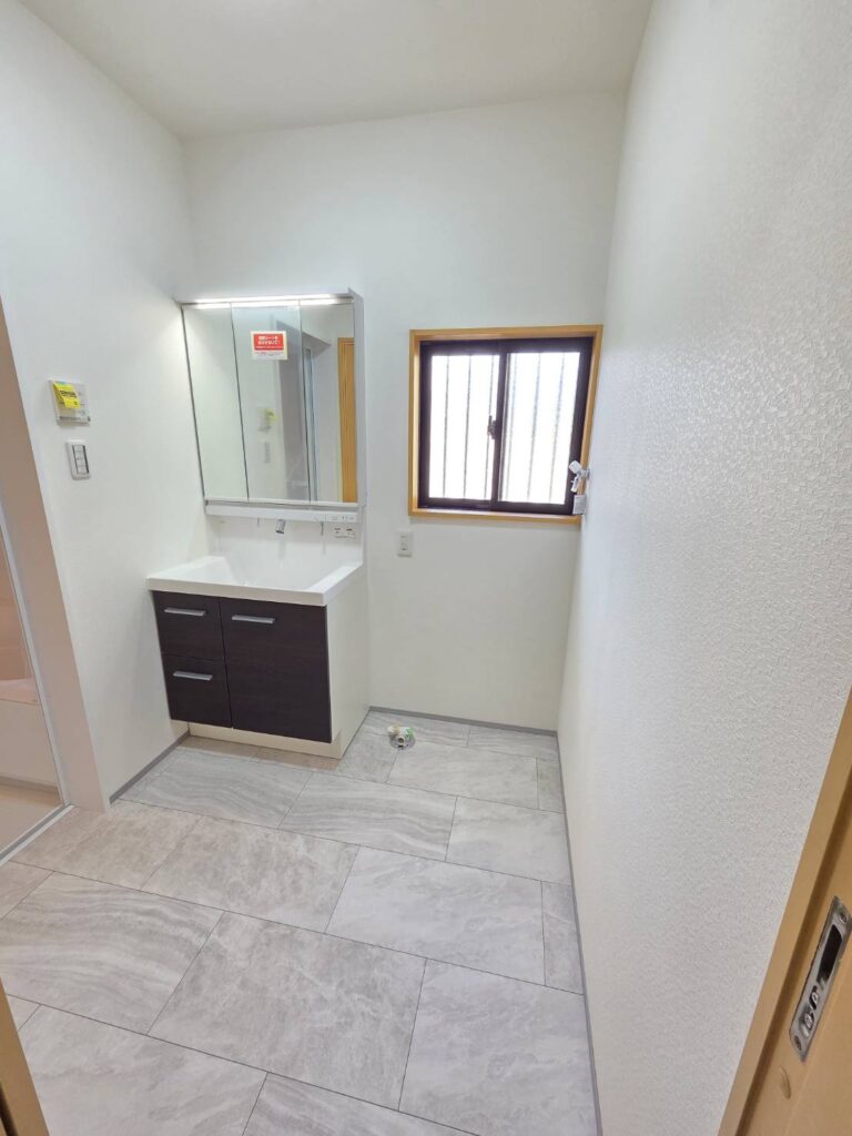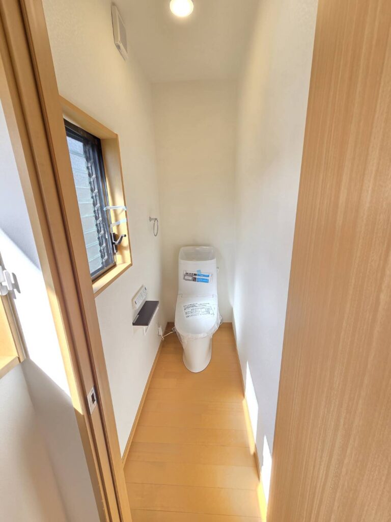 洗面化粧台は三面鏡のシャワー付きに新調しました。トイレも1階・2階ともに新調済みで温水洗浄便座、2連紙巻き器、タオリング付です。