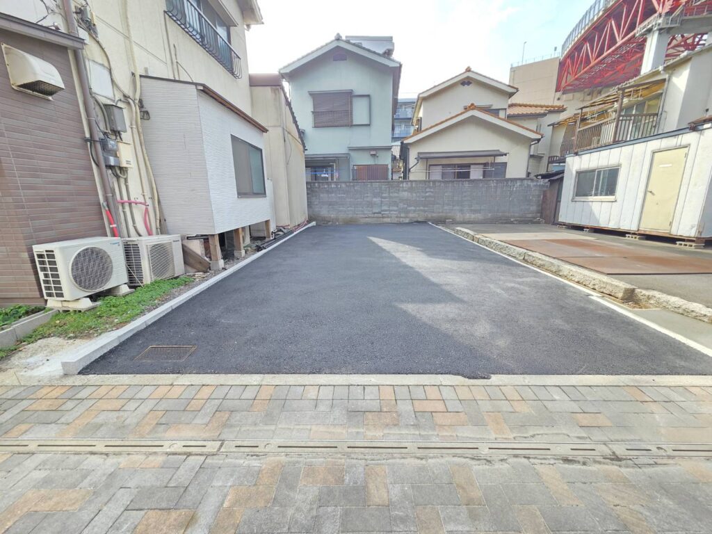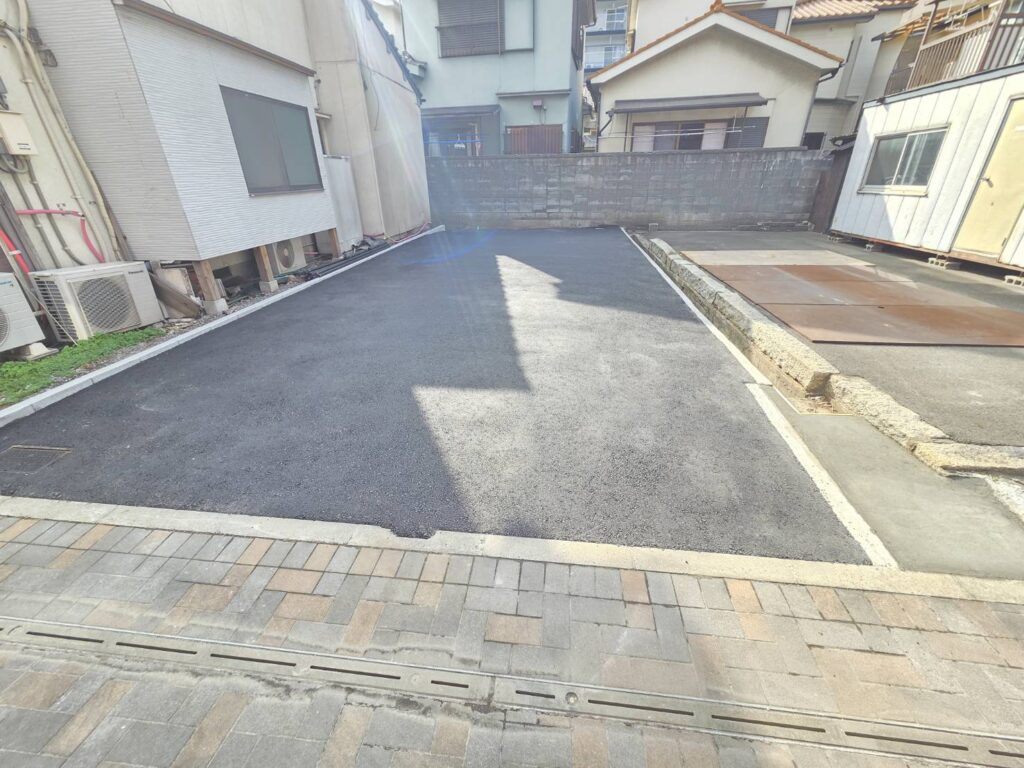 アスファルト舗装の仕上げにしたことにより駐車場用地等、使い勝手が良い更地となりました。